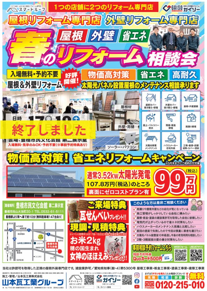 現在は、外壁塗装・屋根リフォーム・窓断熱・太陽光などの