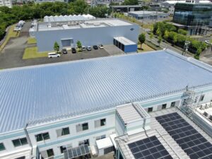 工場や倉庫の折板屋根に特化し、遮熱塗料では実現できなかったムラのない遮熱効果を実現。耐風試験済みで強風下でも剥がれにくく、長期的な性能と安心を両立します。