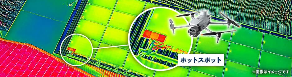 当社では、産業用「赤外線サーマルカメラ搭載マルチセンサードローン」を導入しています。これにより、目視では確認できない高所のパネル不具合を正確に可視化します。