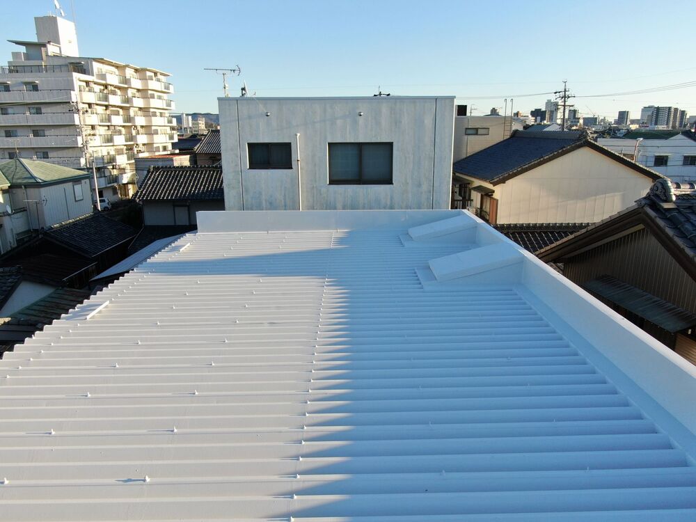 折板屋根で夏の暑さをダイレクトに感じてしまい、どうにかしたいとのご要望があり、「断熱セラミック塗材 ガイナ」をご提案させていただきました。