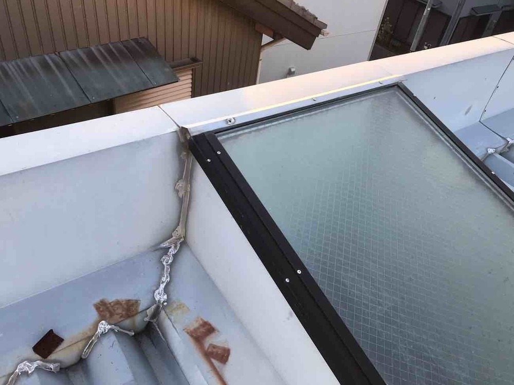 また、天窓からの雨漏りにお悩みだったので、天窓まわりをシーリングで補修し、暑さ対策も兼ねて天窓を板金で覆ってしまうご提案をさせていただきました。
