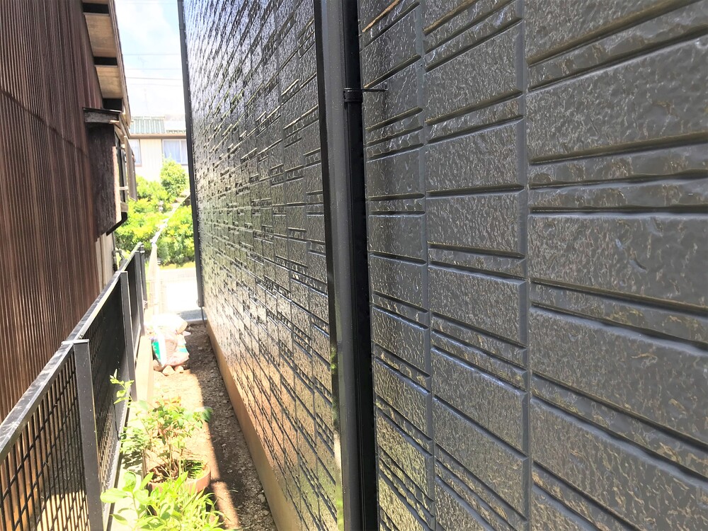 ベージュ系の外壁を濃いグレー系にイメージチェンジを行いました。ご近所の方からも好評でS様にも大変喜んで頂けました。