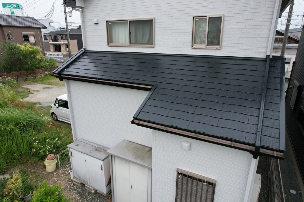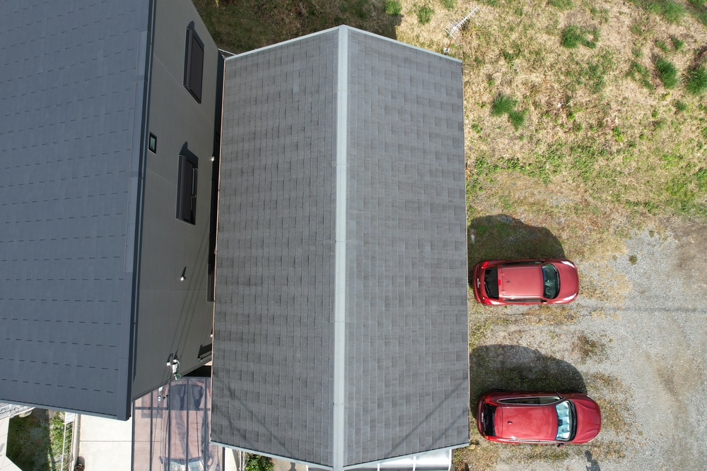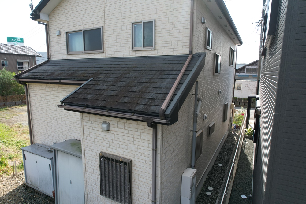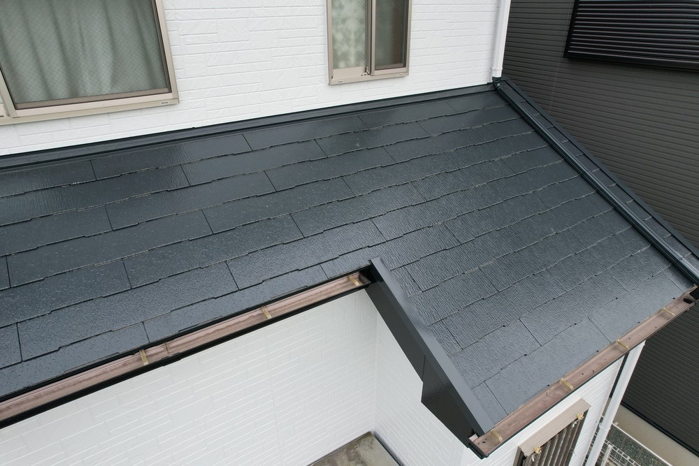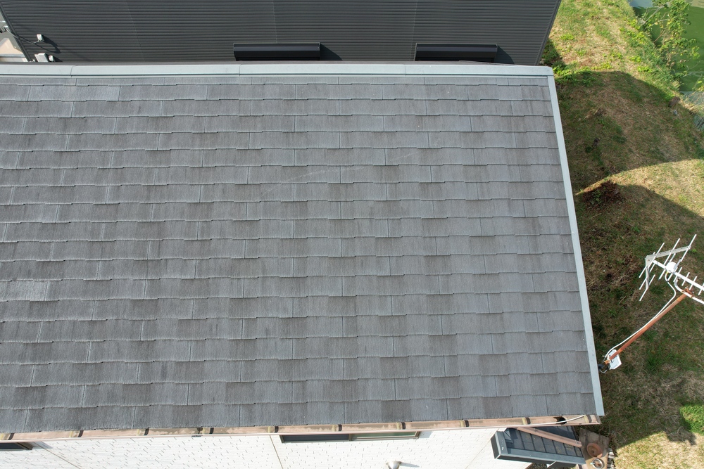 また、北側の屋根はコケの発生が著しかったため、バイオ洗浄でコケを根こそぎ落とし、高耐久な屋根用フッ素樹脂塗料【ガイソールーフガードネオF 遮熱】で施工させていただきました。