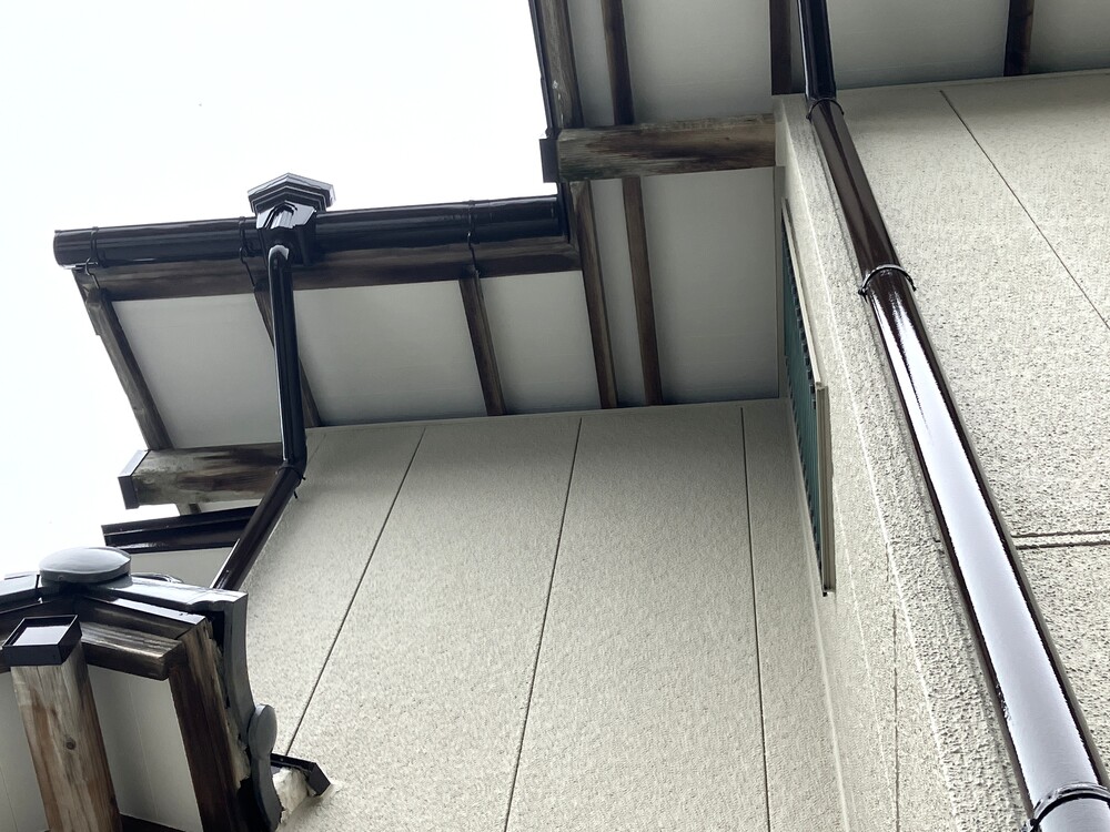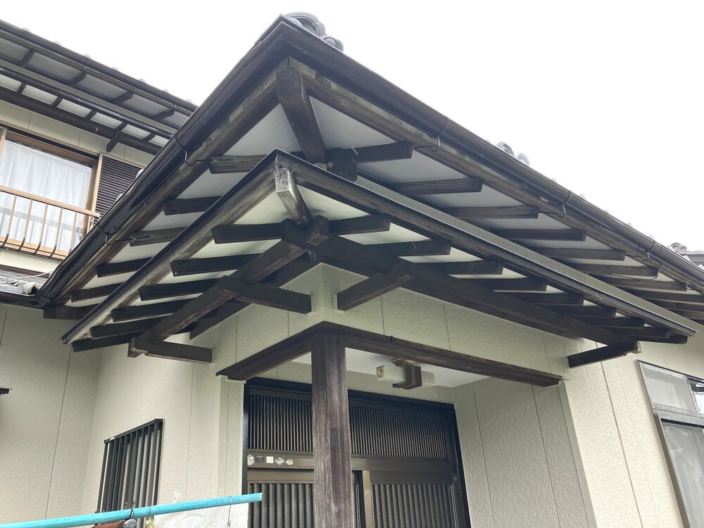和風の建物なので艶のある塗料で塗装してしまうと雰囲気を損なってしまうので、艶消し塗料で落ち着きのある仕上がりをご提案いたしました。
