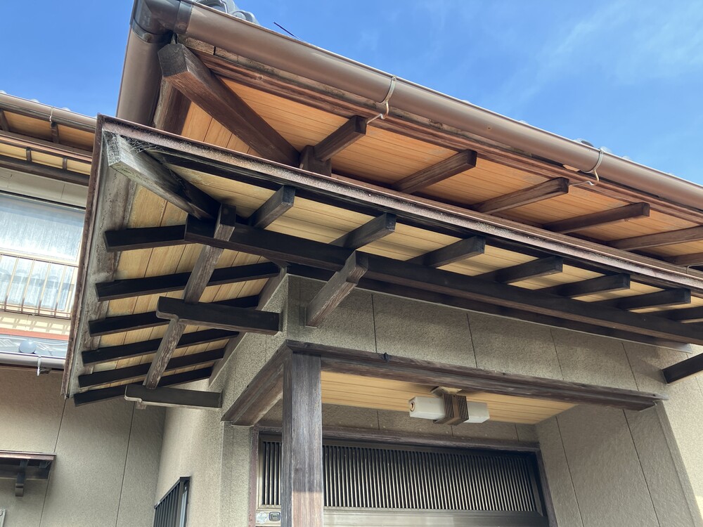 和風の建物なので艶のある塗料で塗装してしまうと雰囲気を損なってしまうので、艶消し塗料で落ち着きのある仕上がりをご提案いたしました。