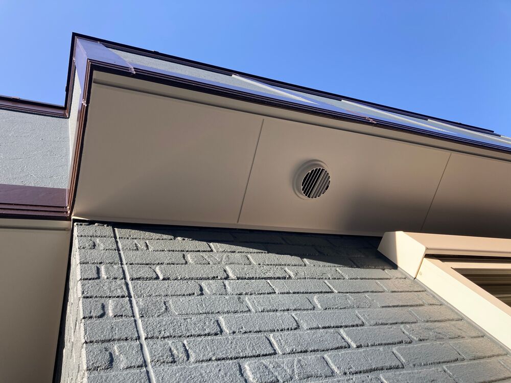 また、軒天の張り替えにあたっては、単にケイカル板を貼り替えるのではなく、万が一雨水が再び浸入した場合でも内部に滞留しないよう、通気見切り材を新設し、排水経路の確保と結露防止の対策を施しました。