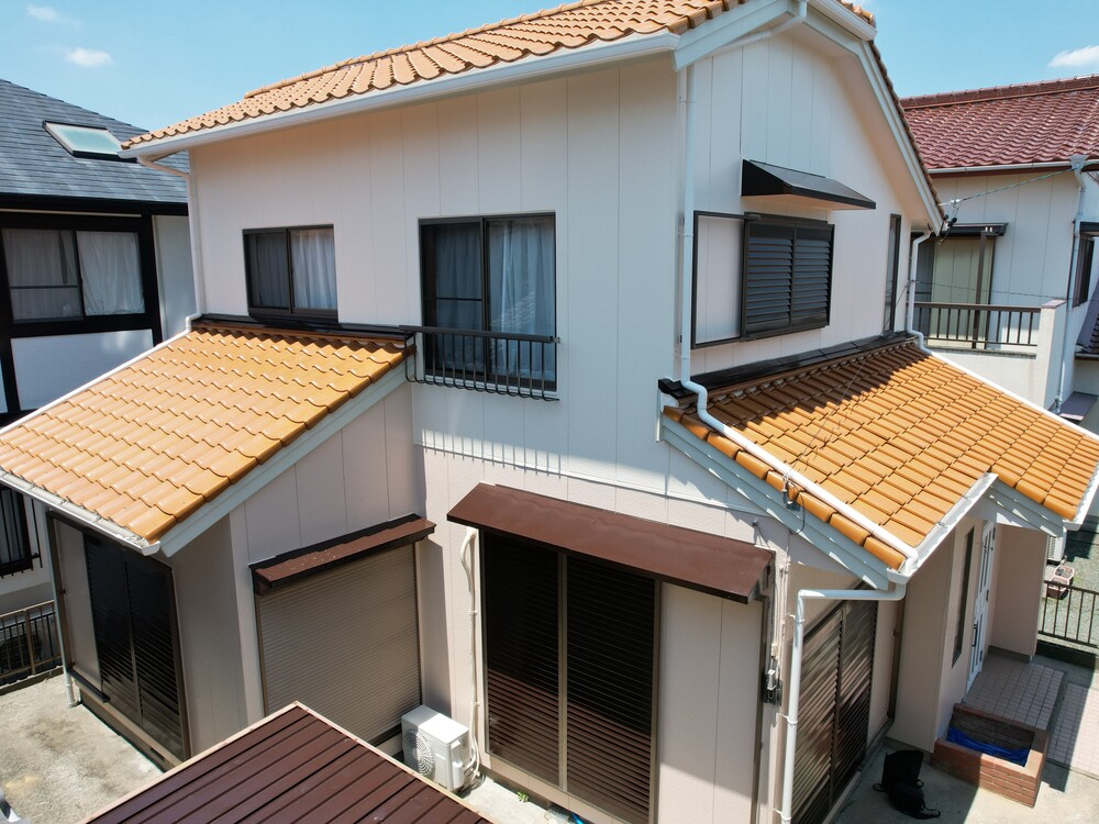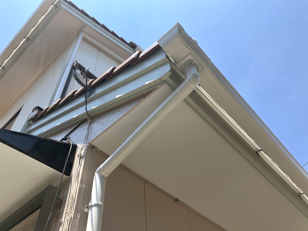 その他、付帯部分は破風鼻隠に耐候性に優れたGL鋼板巻き、軒先漆喰部分は既製品の板金面戸(GL鋼板)を取り付けて、長期メンテナンスフリーの屋根に生まれ変わりました。