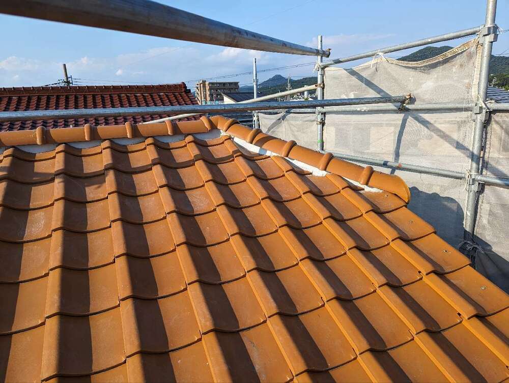 棟瓦は棟金具にしっかりと固定された芯木(垂木)に1本ずつステンレスビスで固定することで地震・台風などの災害に強い屋根となりました。