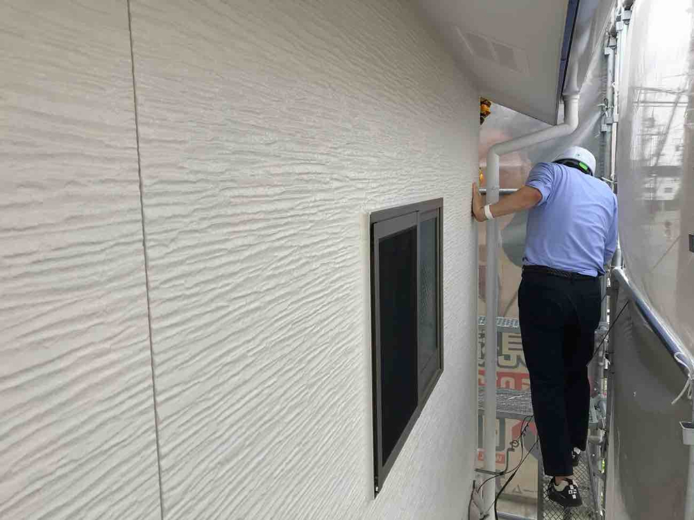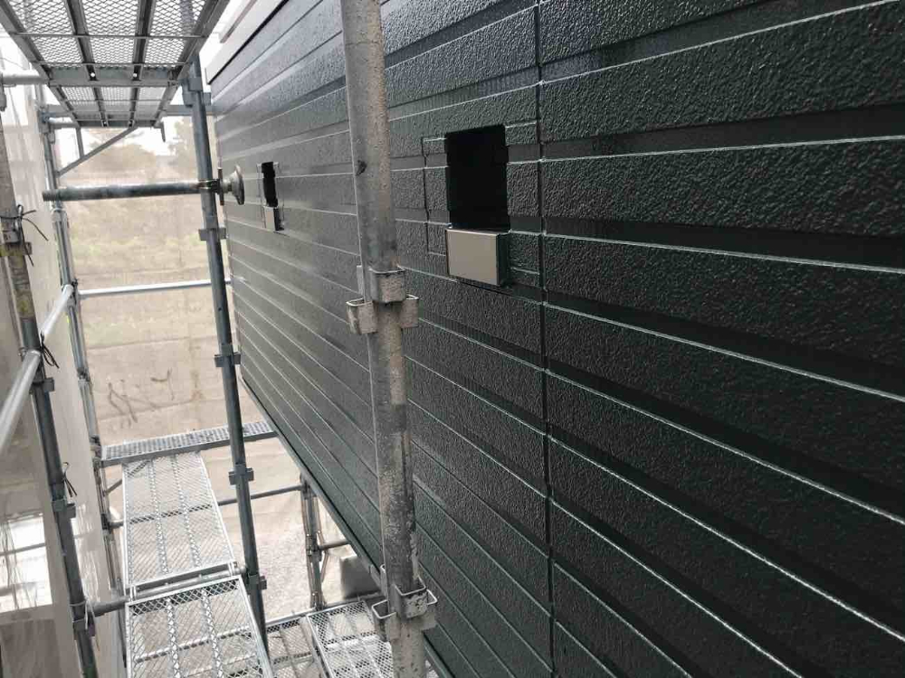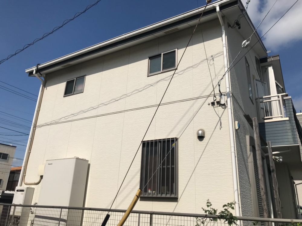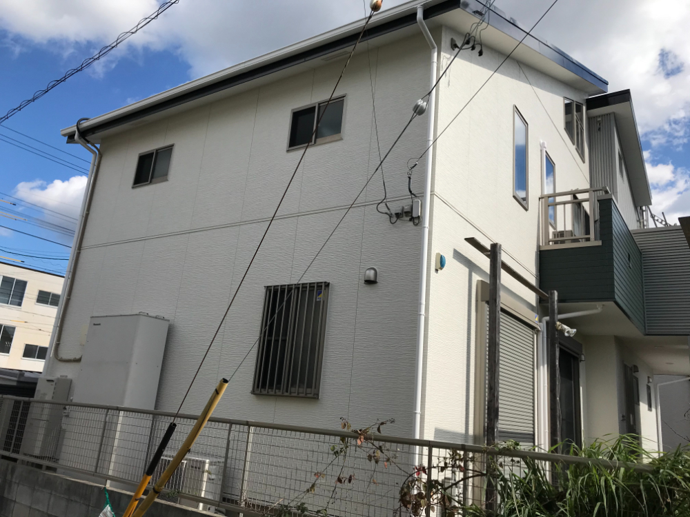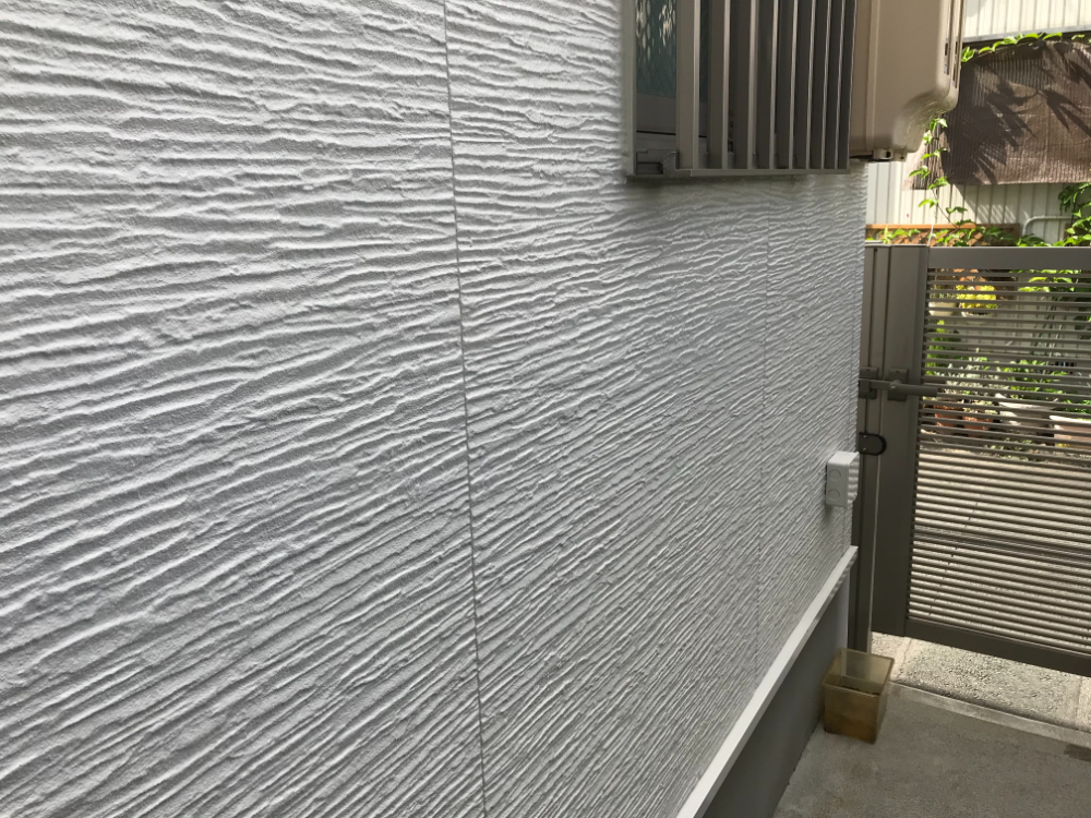 万全な下地作りを行った上で、今回は高機能塗料「ガイソーウォール無機F」で塗装いたしました。 この塗料は、圧倒的な耐候性に加え、親水性セラミックによるセルフクリーニング効果で、将来のコケや汚れの付着を大幅に抑制します。さらに、優れた防カビ・防藻性も兼ね備えているため、長期にわたって美しく清潔な状態を維持し、お客様の住まいをより長く、より強く守り続けます。