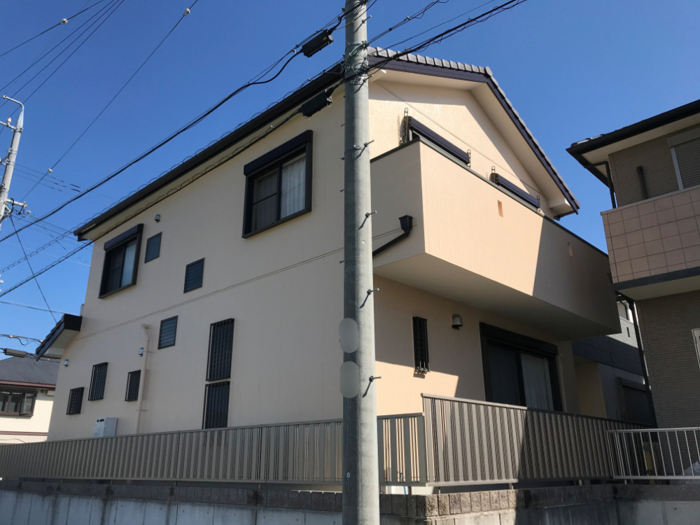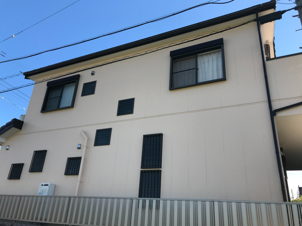 シーリング打ち換えやサイディングの反り補修、そして高耐候性塗料『ガイソーウォールフッ素4FⅡ』での塗装により、新築のような美しい外観に生まれ変わりました。