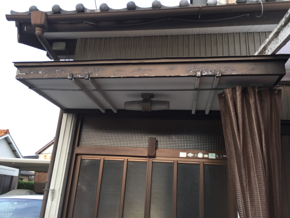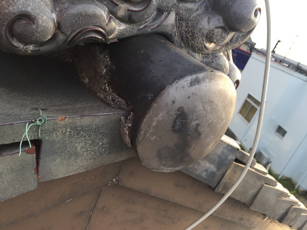 5~6年前から大雨・強風の度に漆喰が剥がれては地面へバラバラと吹き飛ばされて、落ちている状態でした。