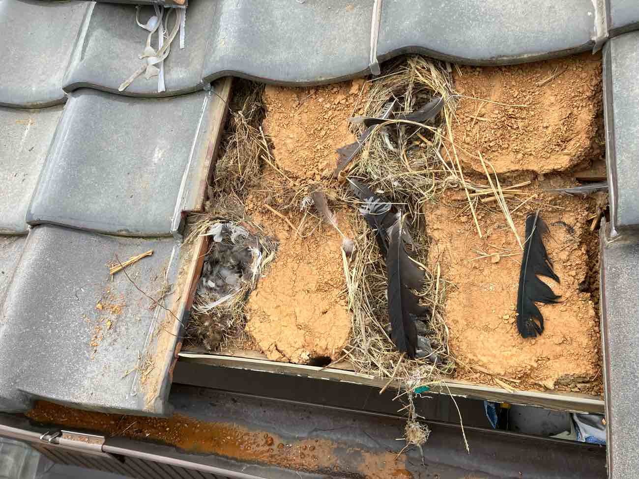 今回、鳥の巣が作られていた形跡がありました。