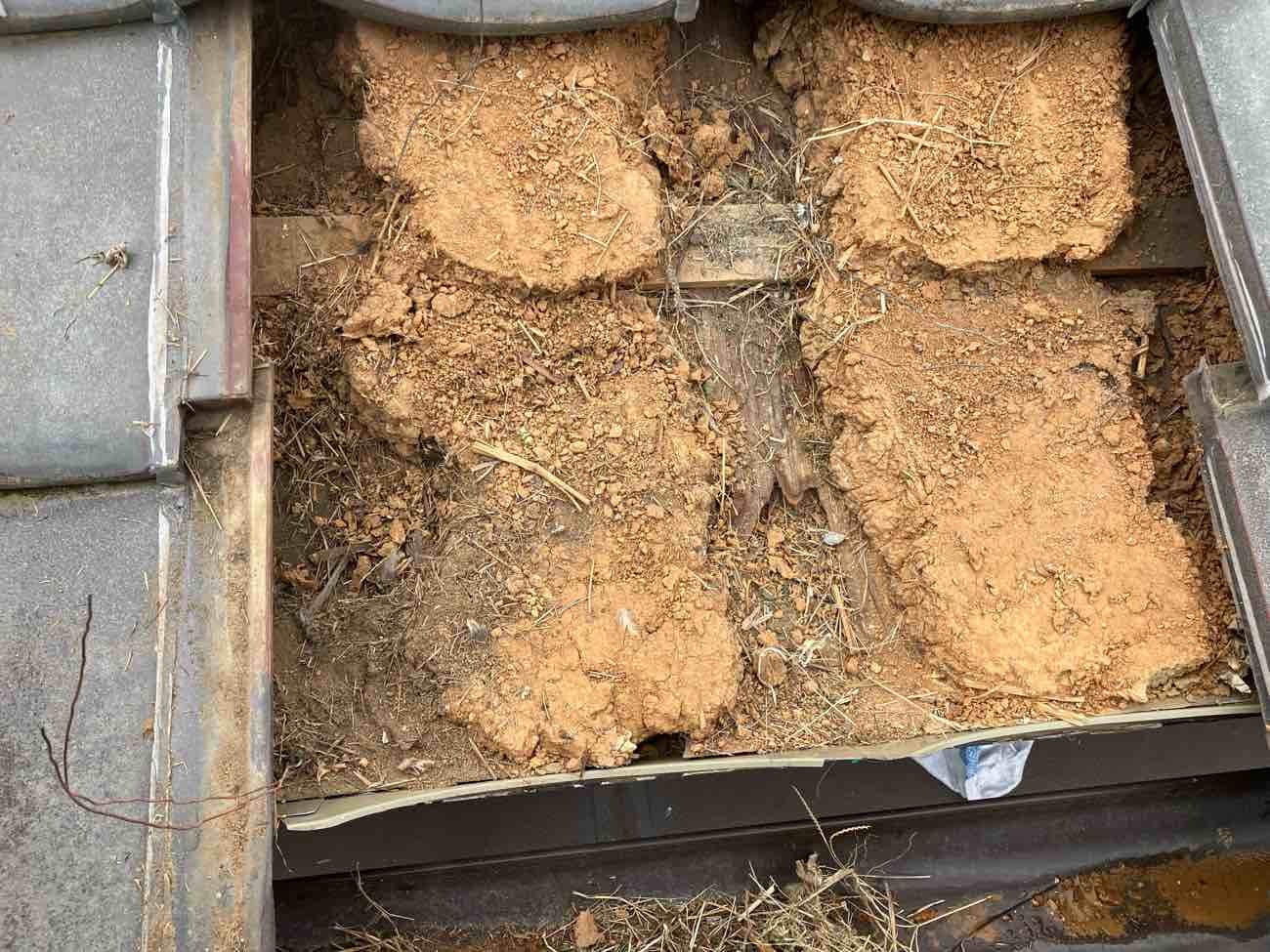 漆喰が落ちてしまった少しの隙間からスズメなどが侵入し巣などを作ってしまい糞尿などにより屋根の下地材が腐食してしまうトラブルが発生してしまいます!