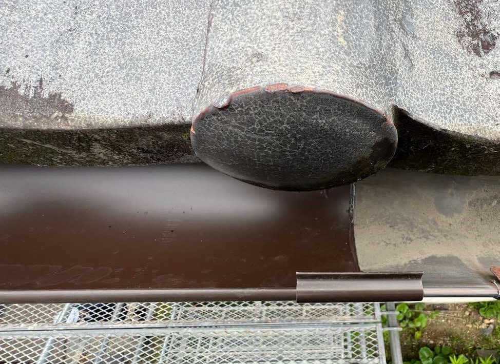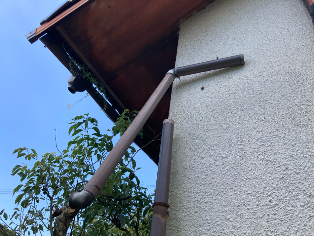 全面の樋を交換すると費用が増すため、破損部周辺の部分的な補修を行うご提案をしました。補修対象の集水器と縦樋がそれぞれ別の場所にあるため、足場も部分的に2ヶ所で架けるご提案をしました。
