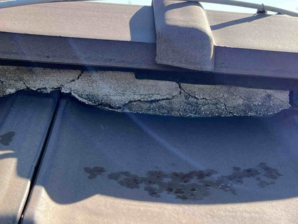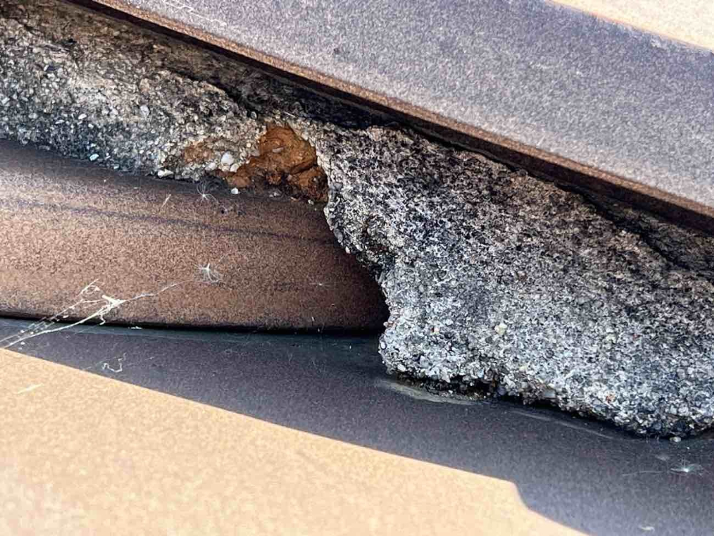 ドローンで屋根調査をしてもらったところ、谷樋と漆喰が劣化していることが分かりました。