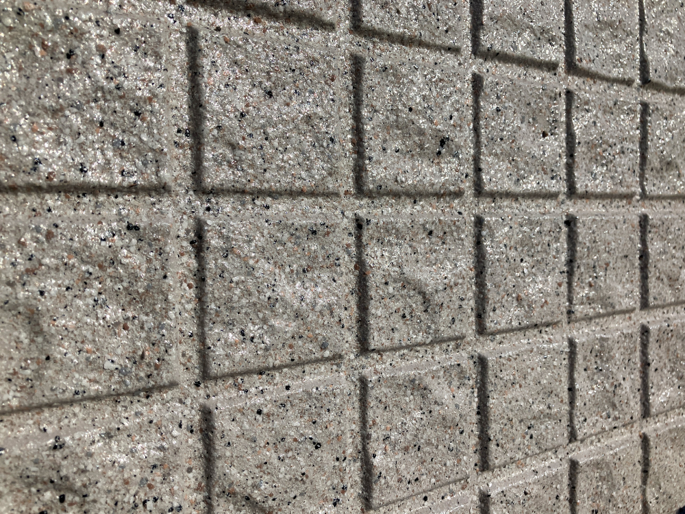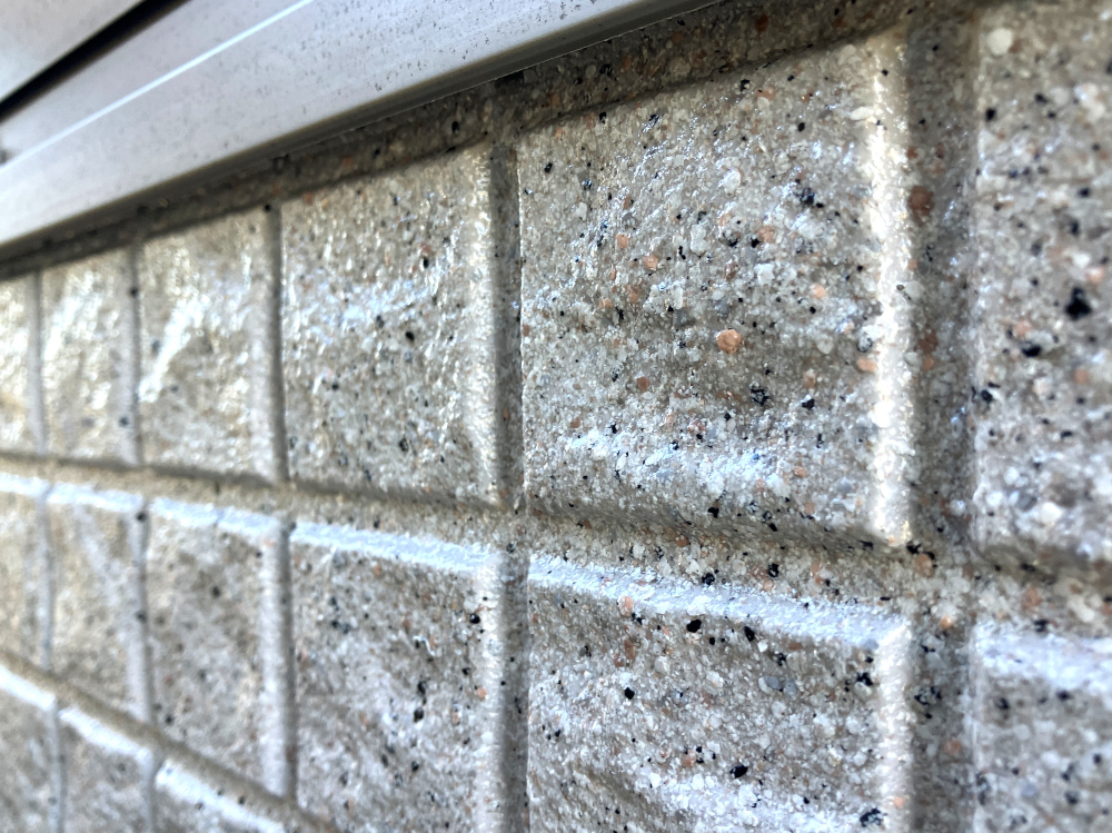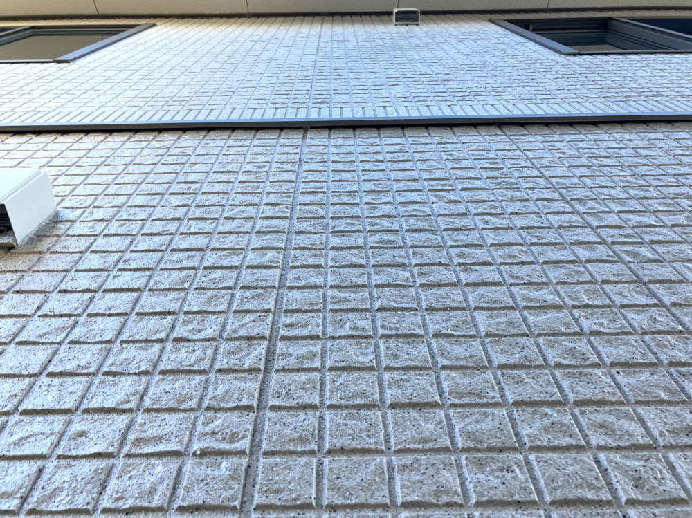 ハウスメーカーから提示された見積は予算が合わず金額を抑える為に塗りつぶしにするしかないとお考えだったのですが、当社の高耐久無機系多彩模様仕上げ材の「ガイソーウォールグランストーン」をご提案いたしました。天然鉱石(カラーマイカ)配合により、単色塗装にはない奥行きのある高い意匠性(多彩模様仕上げ)を実現することができます。