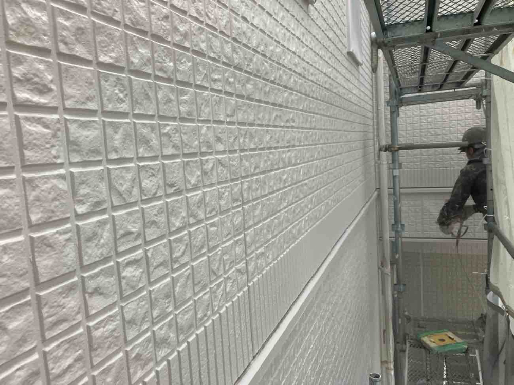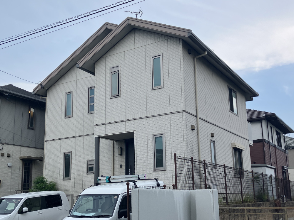 ハウスメーカーから提示された見積は予算が合わず金額を抑える為に塗りつぶしにするしかないとお考えだったのですが、当社の高耐久無機系多彩模様仕上げ材の「ガイソーウォールグランストーン」をご提案いたしました。天然鉱石(カラーマイカ)配合により、単色塗装にはない奥行きのある高い意匠性(多彩模様仕上げ)を実現することができます。