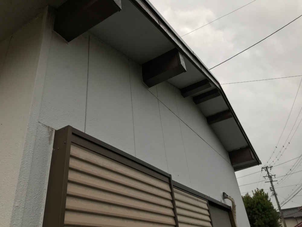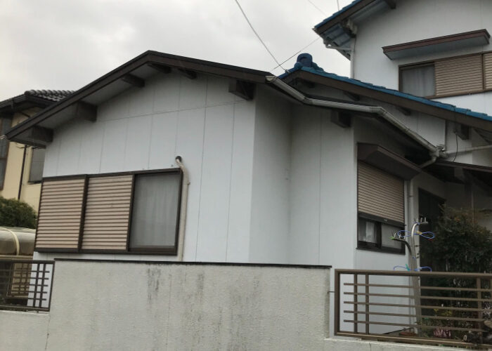 施工前は、外壁にクラックが見られ、霧除け部分の木部にも腐食があり、全体的に大きな傷みが確認できました。