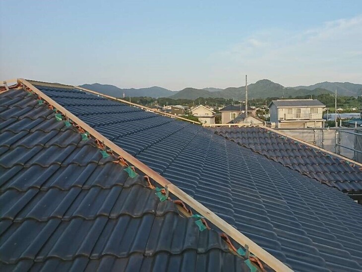 乾式コンクリート瓦から葺き替えた瓦は、三州野安のセラマウントと言う商品で陶器瓦の中では軽量な瓦になります。
